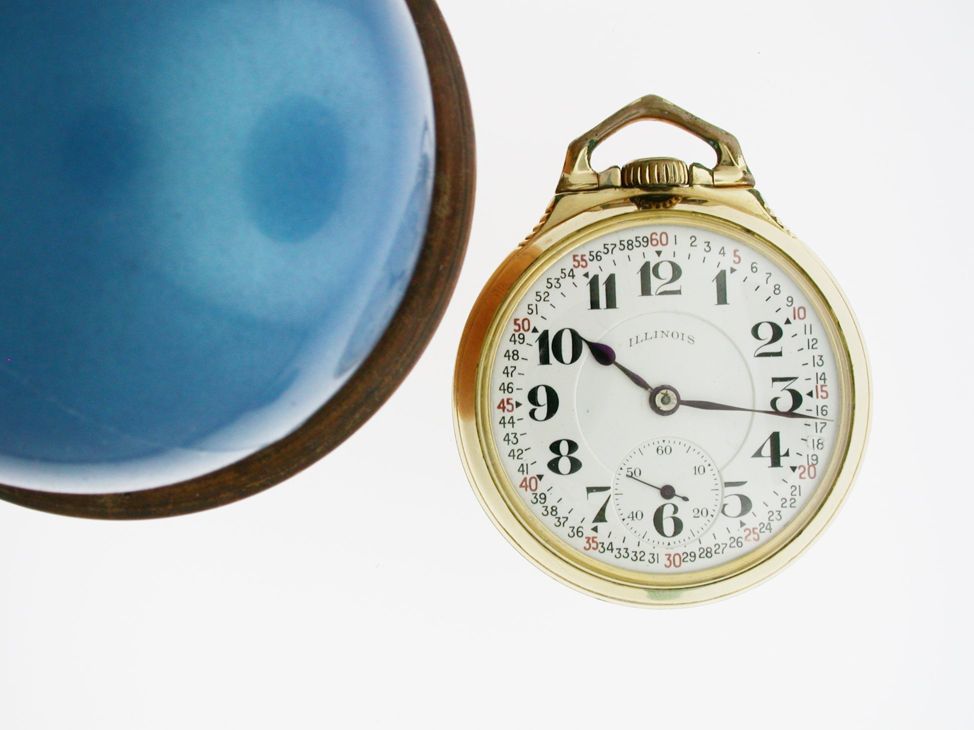 Dial: The white enamel dial has thick black Arabic numerals with outer minute divisions. The dial has blued hands and a subsidiary second’s dial at the six. The dial is signed in the upper centre: “Illinois.”