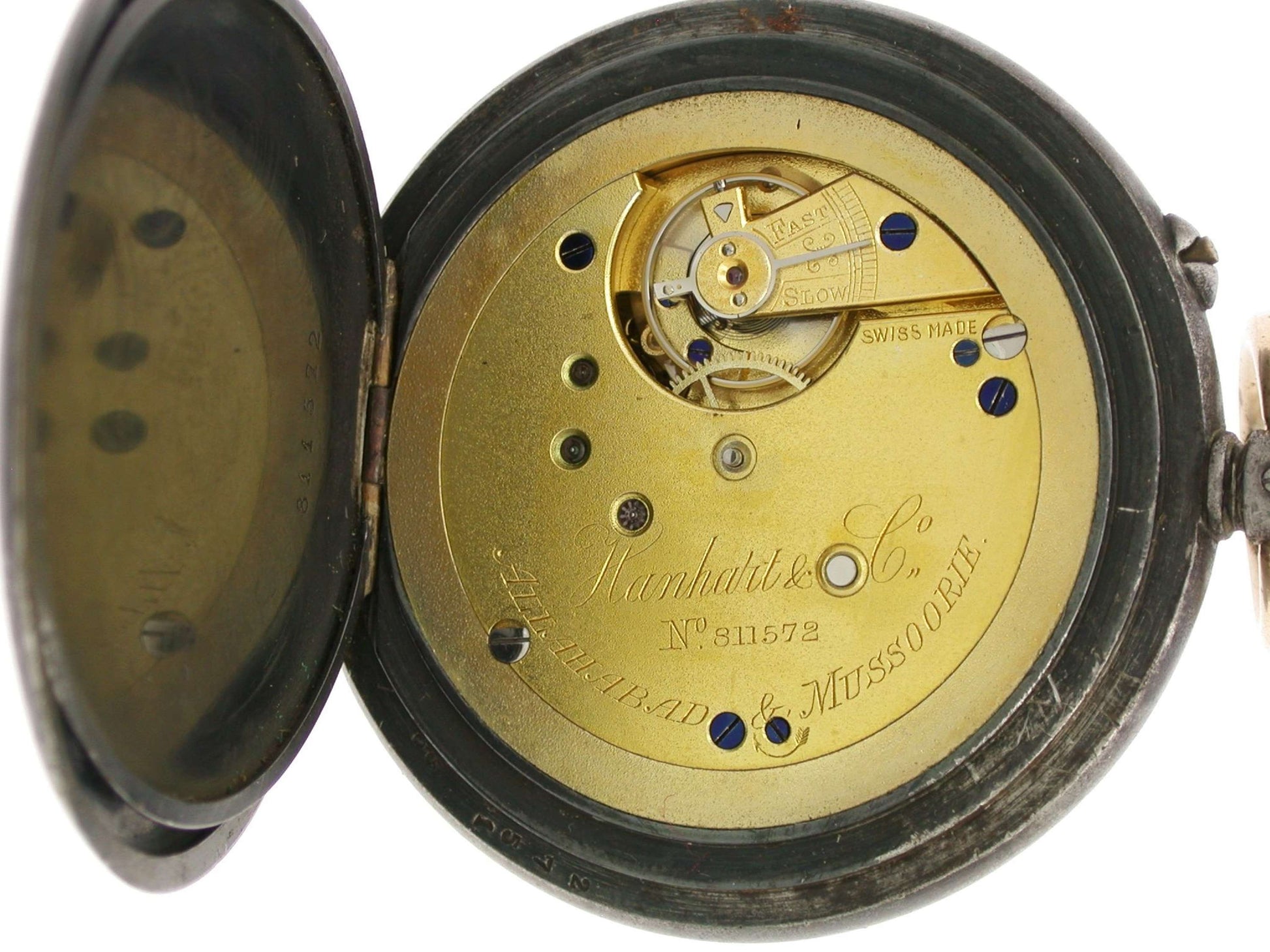 Antique Hanhart & Co retailed in Allahabad & Mussoorie Gunmetal Pocket Watch Swiss 1900
