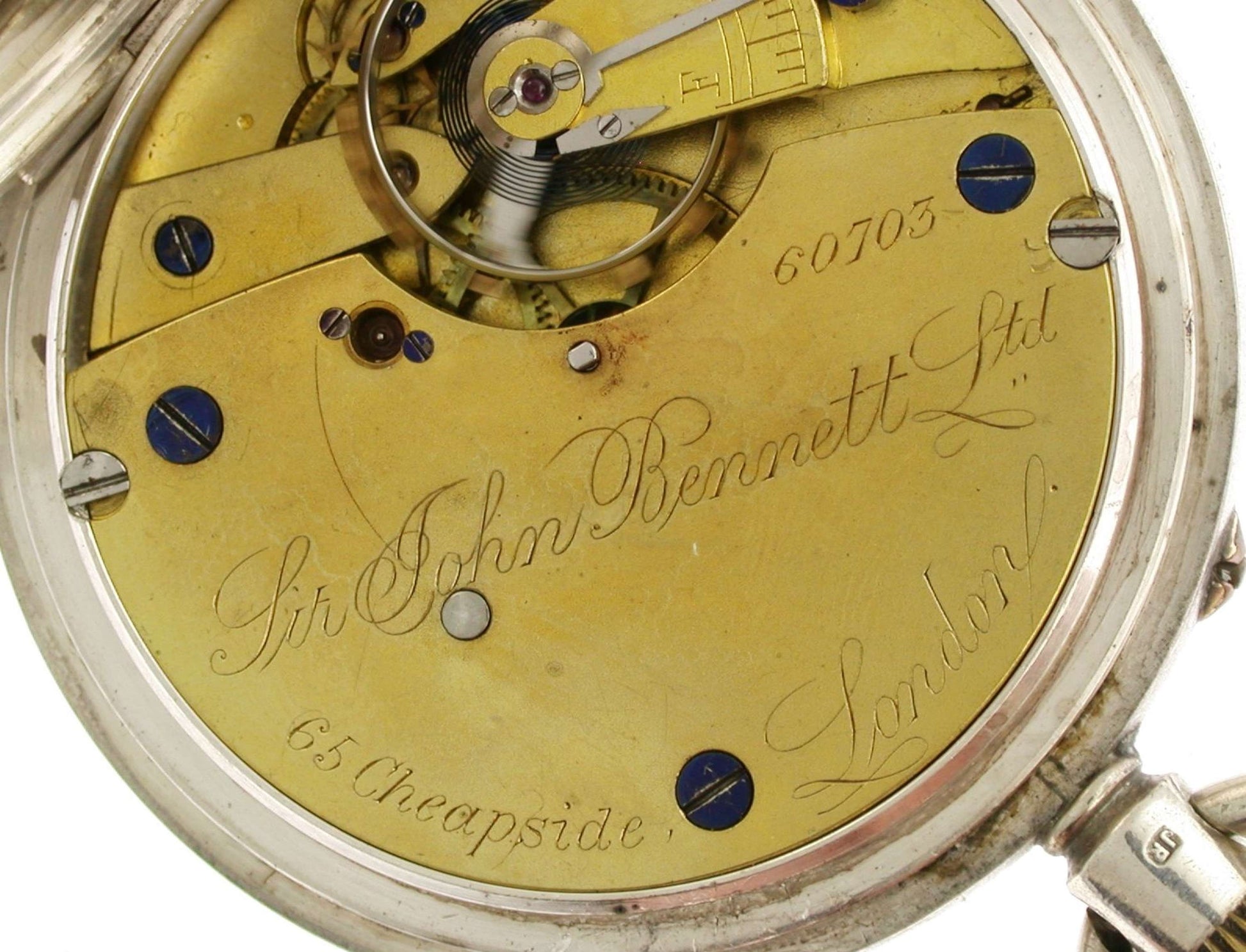 MOVEMENT: The English fully screwed movement has blued screws. The original Bennett movement is in great condition as it has just been serviced by my watchmaker; however, we cannot guarantee accuracy for an antique watch. The movement is signed: " Sir John Bennett Ltd, 65 Cheapside, London" and numbered: 60703.