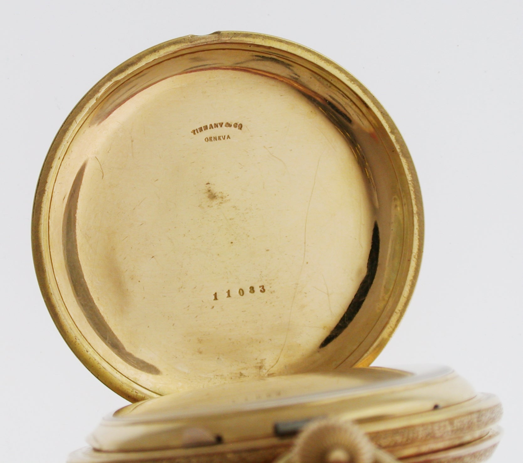 Movement: The high-grade Swiss-made anchor movement with a bar regulator and 18 Jewels. The movement is covered with a glass. It is signed ‘Tiffany & Co Geneva’ and the movement number is: 11083. The watch is in good working condition; however, we cannot guarantee accuracy for an antique pocket watch.