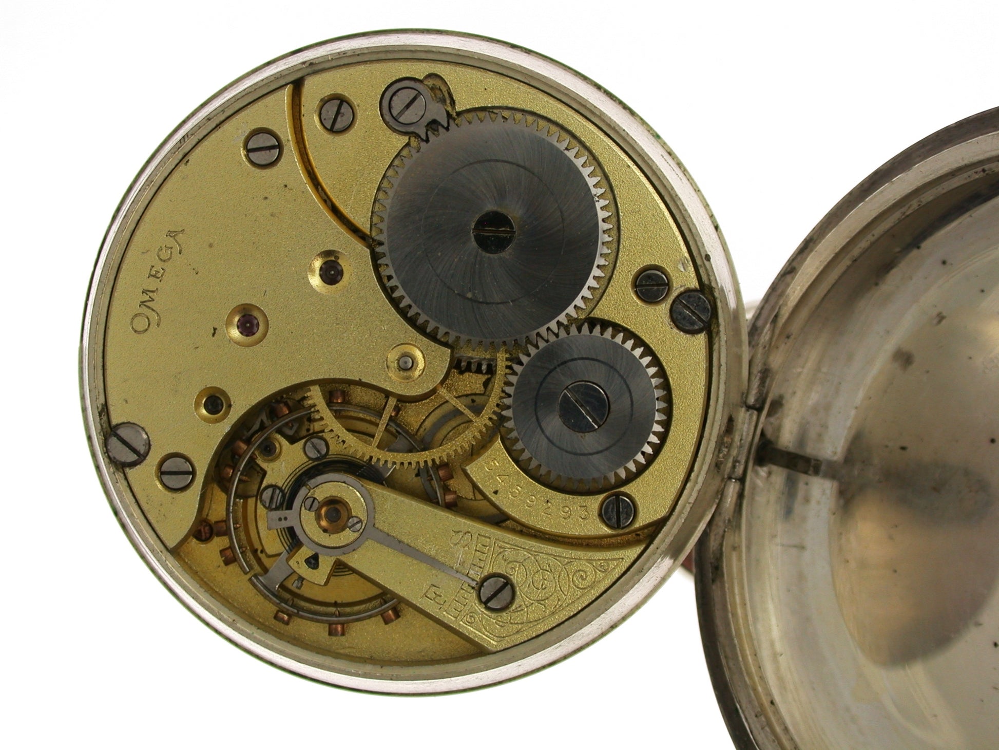 MOVEMENT: It has an anchor movement lever escapement and 17 jewels. The movement is signed ‘Omega’ and numbered ‘5459293’. The watch is working very well; however, we cannot guarantee the accuracy of an antique pocket watch.